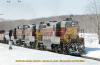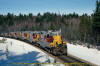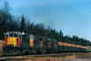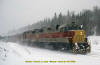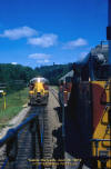 Train No. 3 is at the Searchmont Highway road crossing at the north switch Goulais siding. September 22, 1994. added 3-31-2009 |