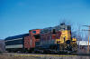 Here are both passenger trains (No. 4 and a Passenger Extra South) stopped at Frater account a passenger on No. 4 had a heart attack at Canyon and they were flying a helicopter into Frater for him. September 21, 1982. |