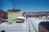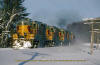 Extra South high-balls past Frater Station on a cold windy and snowy day - I took this photo through the kitchen door window! March 1, 1983. |