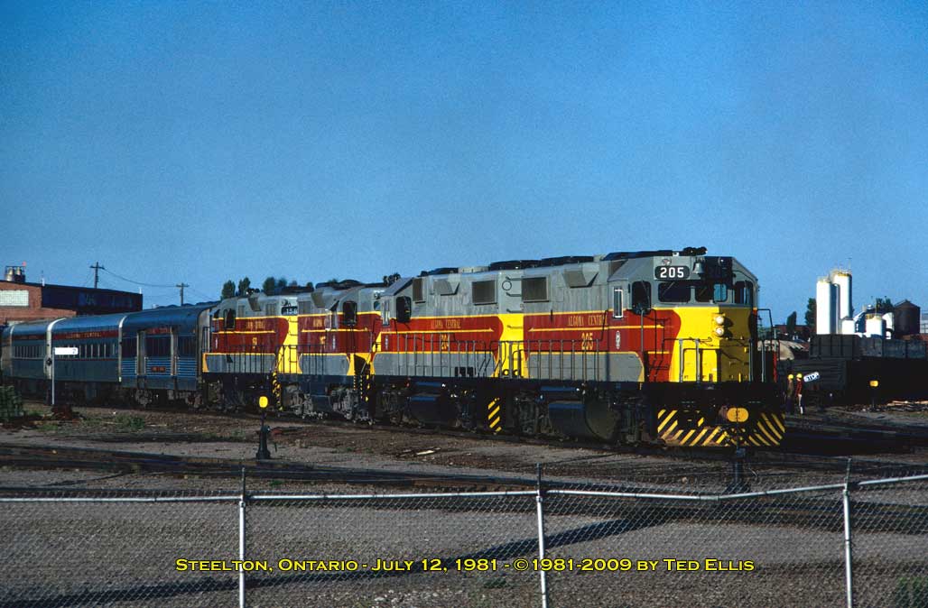 The ONR's "Northlander" train shown here at Steelton October 22, 1978. It derailed near Achigan while headed north towards Hearst and was returned to the Sault. |